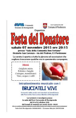 L'Avis di Rorai Grande organizza la tradizionale Cena del donatore aperta a chi, persone o associazioni, vuole tra scorrere qualche ora in compagnia. L'appuntamento è per sabato 7 novembre all'oratorio San Lorenzo di Rorai Grande. Il ricavato della serata sarà devoluto in beneficenza alla parrocchia di San Lorenzo.
